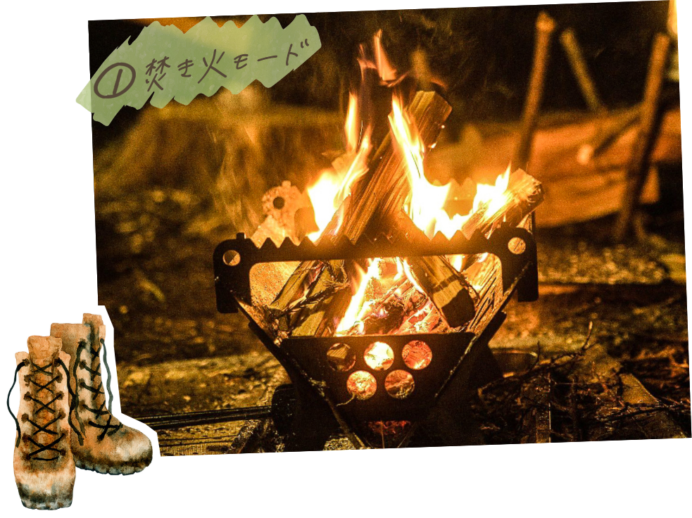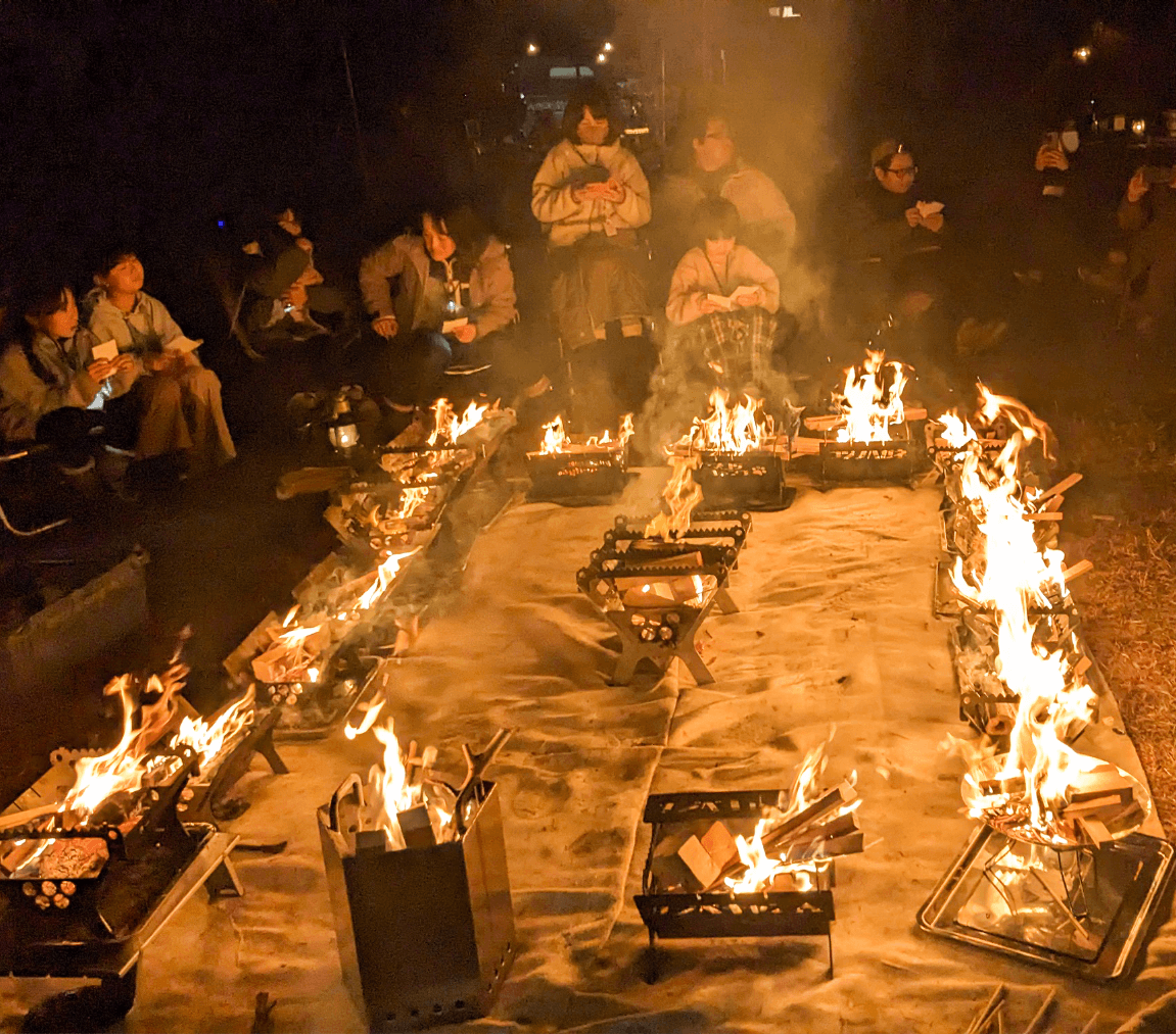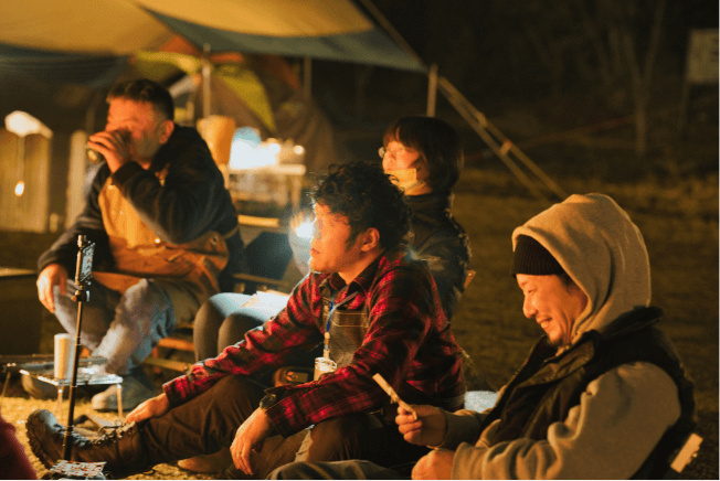 フジノハガネ焚火台を囲んでおしゃべりしたり、