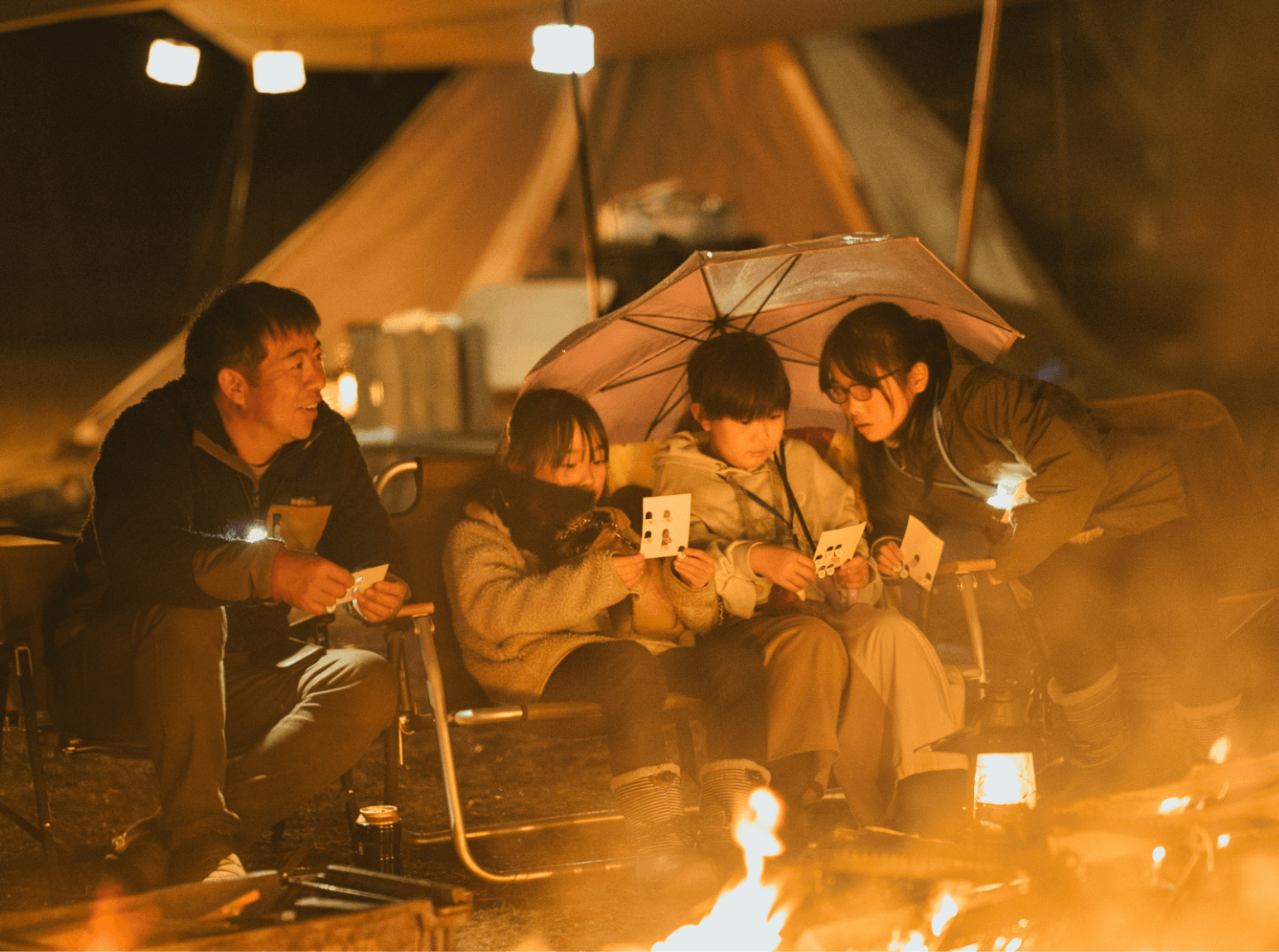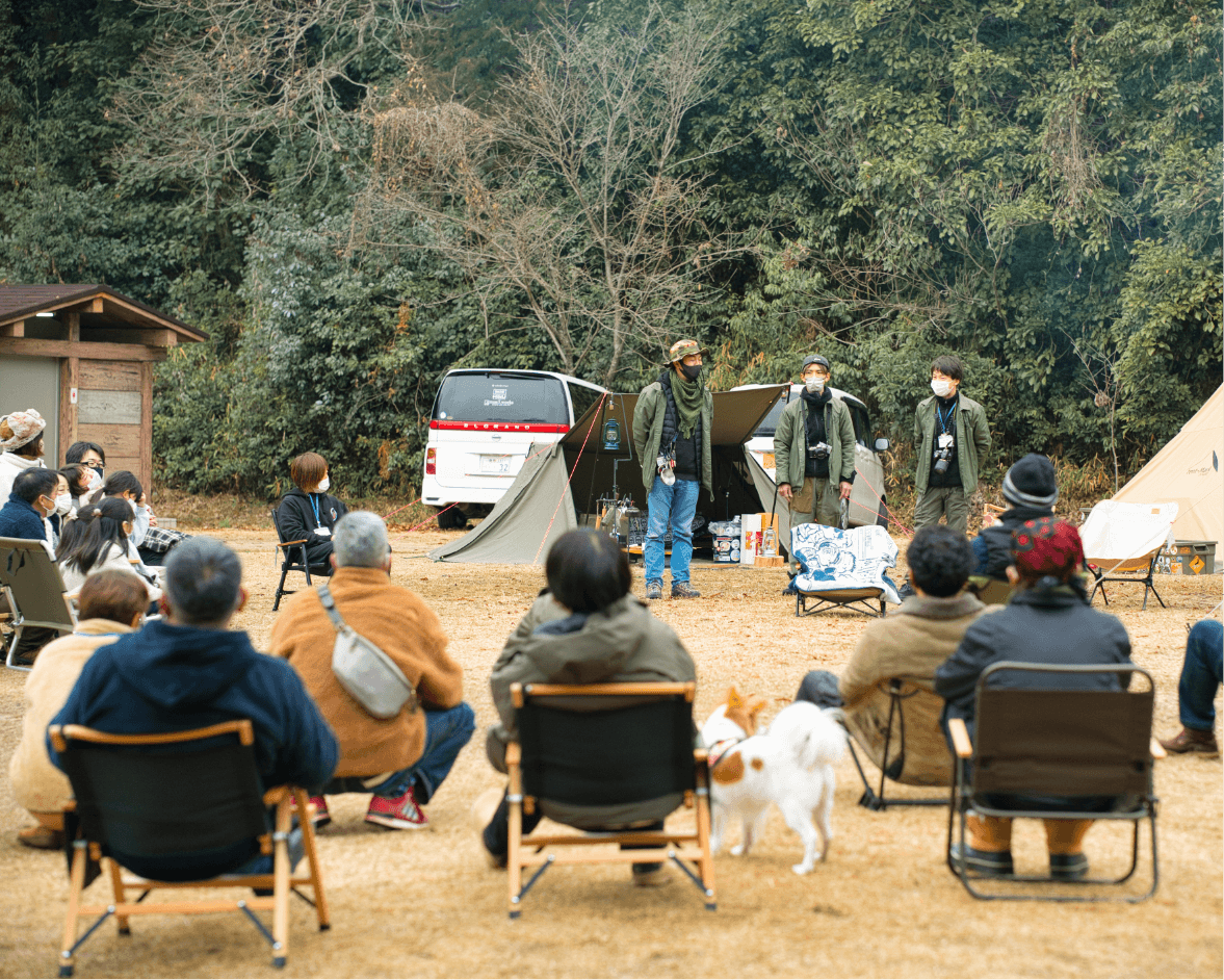 いろいろなキャンプ場にみんなで集まって楽しむ、